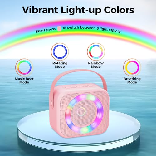 Portable and Fun Design: With 4 magic voices and 6 dynamic LED light modes that sync with the music, this karaoke machine adds excitement to any activity. Its leather wristband makes it easy to carry anywhere.